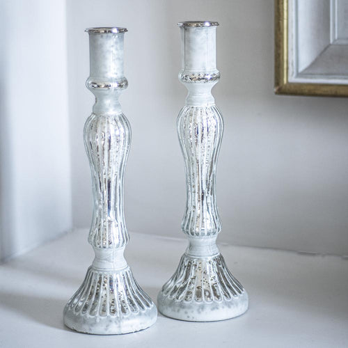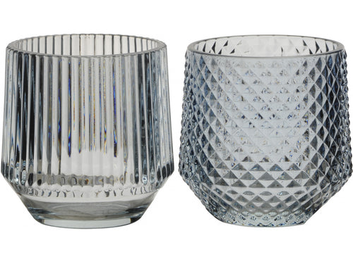 • Tapered Clear Glass Grey Candle Holder / Vase