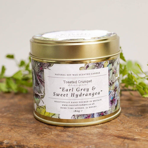 Earl Grey & Sweet Hydrangea Candle in a Matt Gold Tin