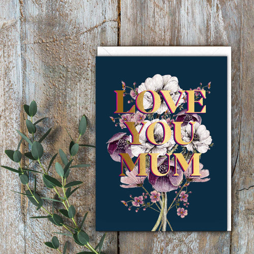 Love You Mum (White Blossom Noir) Card (Cello-Free)