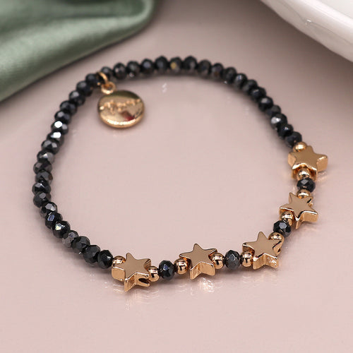 Midnight bead bracelet with golden stars and metallic beads
