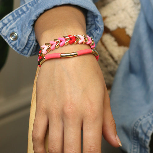 Mixed pink and gold heart chevron bracelet
