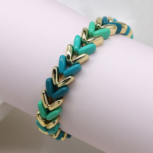 Mixed blue and gold heart chevron bracelet