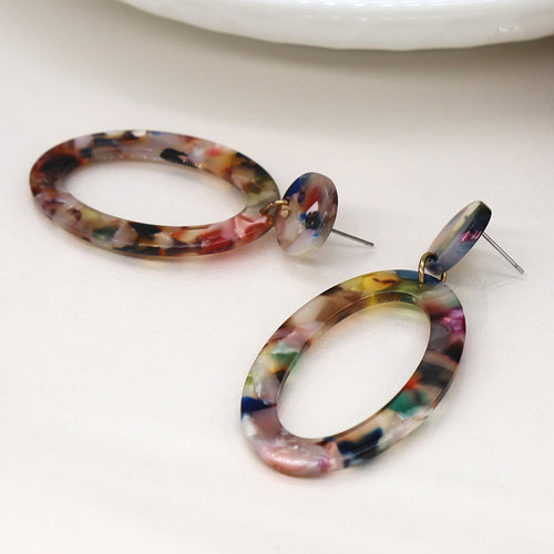 Multicolour terrazzo acrylic oval and disc earrings