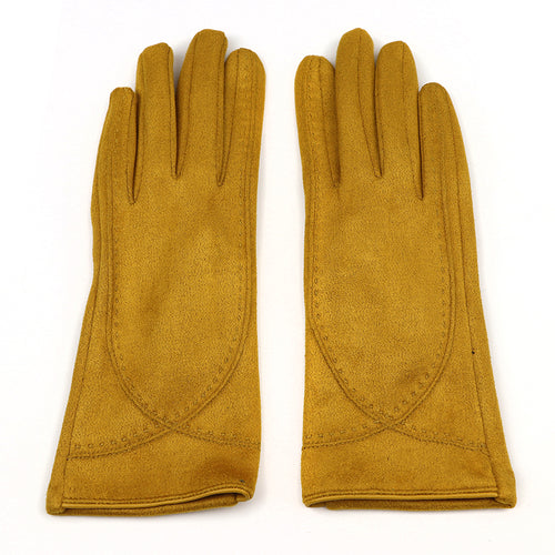 Mustard faux suede stitch detail gloves