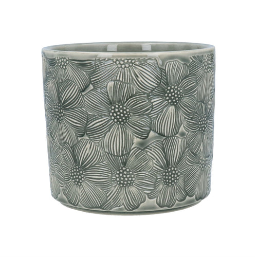 Stoneware Pot Cover 20cm - Grey Cosmos