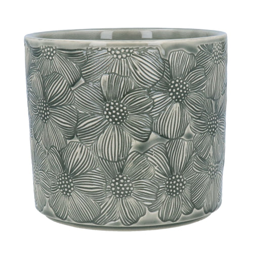 Stoneware Pot Cover 17cm - Grey Cosmos