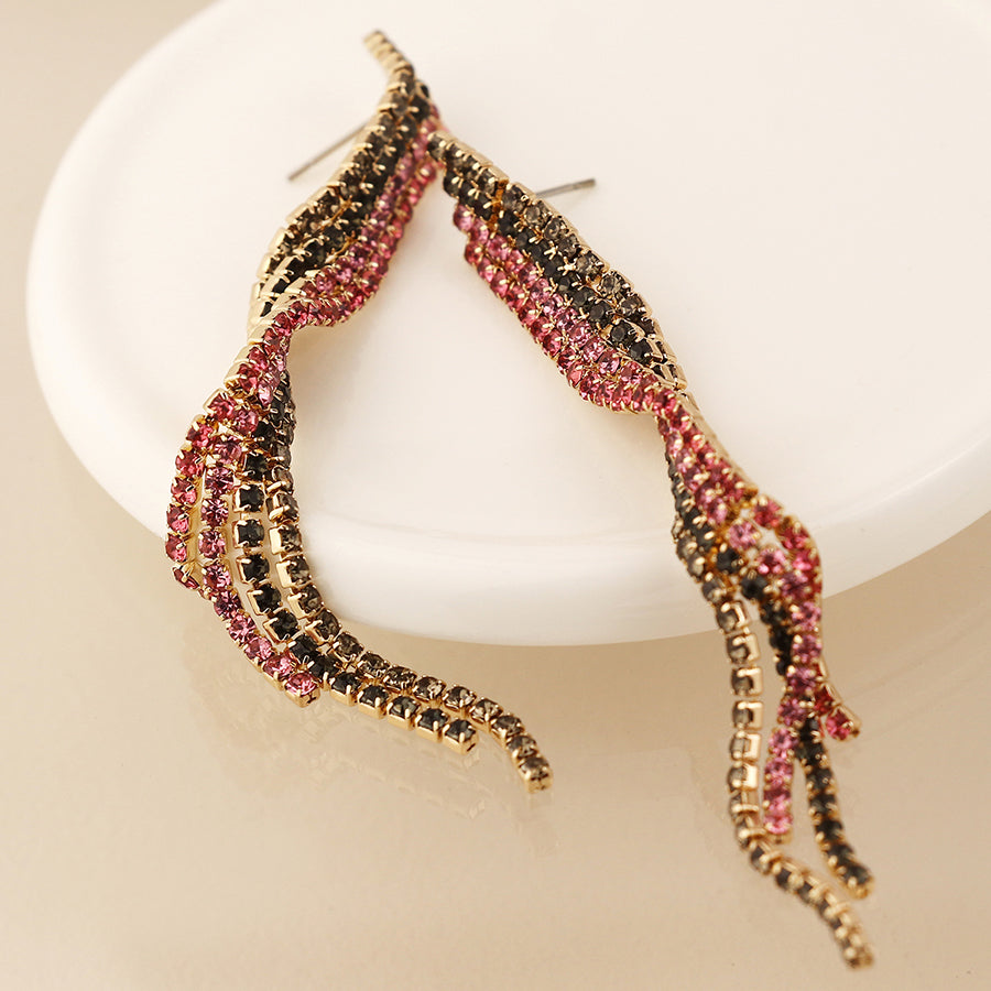 Black and pink mix ribbon twist crystal earrings