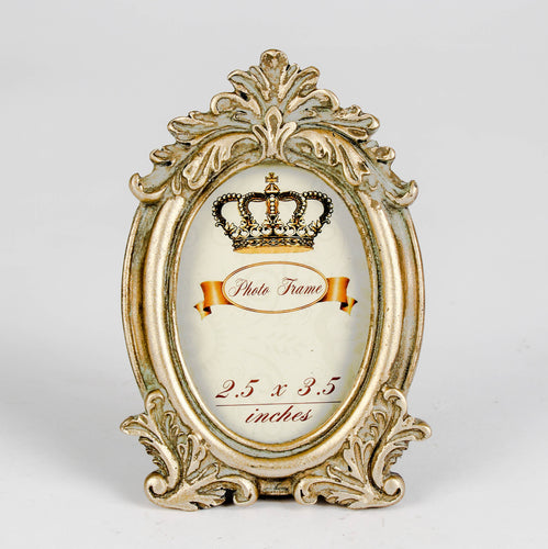 Gold Antique Baroque Decorative Oval Photo Frame – 2.5×3.5"