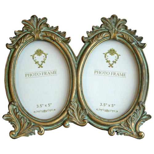 Vintage-Inspired Double Oval Photo Frame – Antique Gold