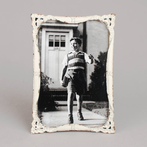 Vintage Style Distressed White Metal Photo Frame
