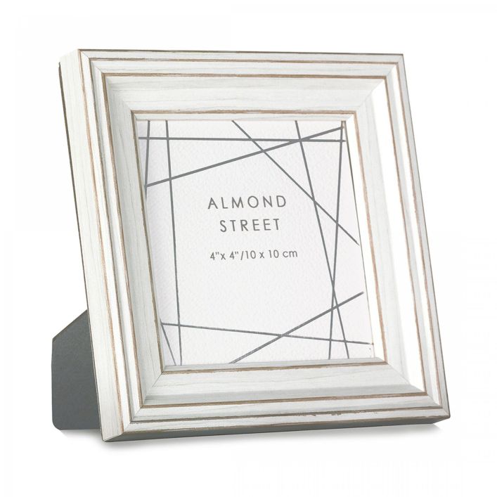 A simple chalk-white, wood effect photo frame with distressed edging. The Scandinavian design oozes character. Complemented by a grey velvet window opening back, the versatile style is available in two additional sizes 6" x 4" and 7" x 5".