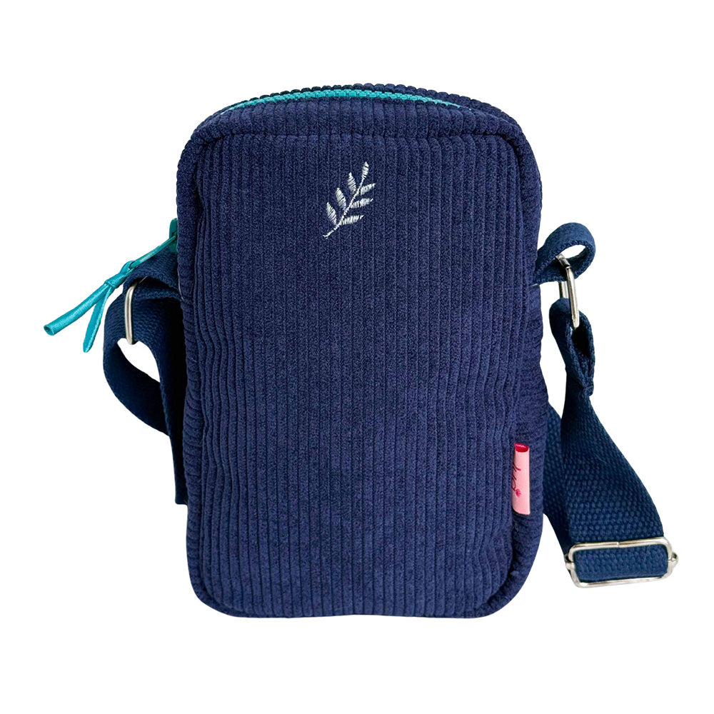 A new pouch cross body bag in velvety jumbo corduroy. Featuring silky lining, contrast statement zip colours and a hand-embroidered gold/silver little sprig on the front.