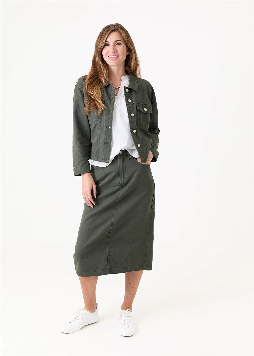 Your new go-to layer for easy everyday style. This ladies collar jacket is made from soft, durable cotton twill that feels comfortable and looks effortlessly cool. Lightweight and relaxed, it’s perfect for pairing with the mix and match bottoms in the collection. A simple, timeless design makes it easy to style season after season.