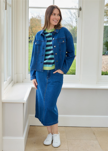 Denim Split Detail Midi Skirt