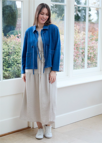 Denim Boxy Tie Front Collar Jacket