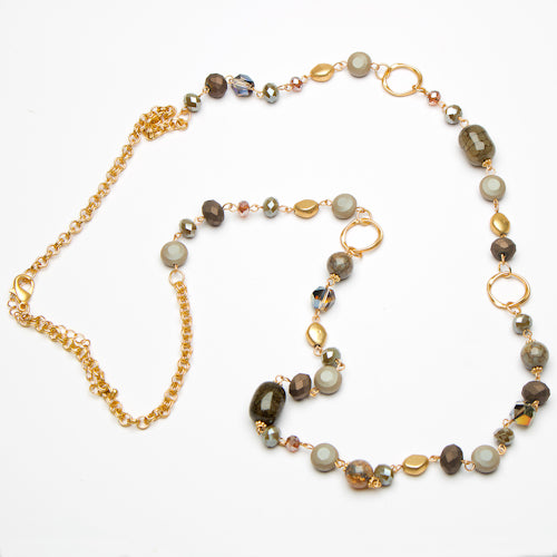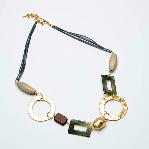 Short necklace with metal, wood and bead details