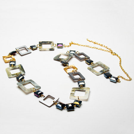 Long necklace elongated resin & metal links
