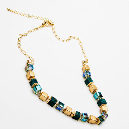 Short necklace with square resin & metal beads