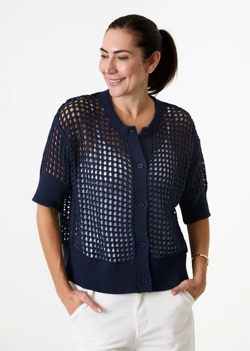 Cotton Mix Crew Neck Holes Cardigan
