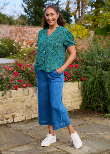 Denim Cropped Wide Leg Elastic Back Jean