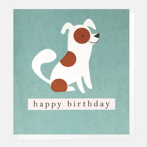 Happy Birthday White Spotty Dog On Teal