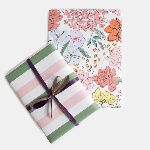 Pastel Sketch Floral & Stripe Double Sided Wrap