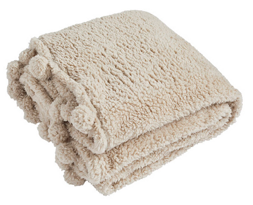 Cosy pom pom throw - linen colour