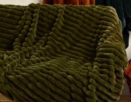 Ribbed faux fur throw olive