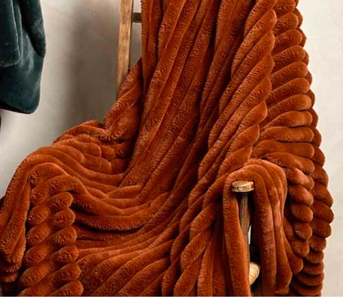 Ribbed faux fur throw spice