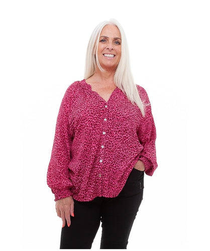 Mixed Ditsy Spot High Neck Shirred Blouse