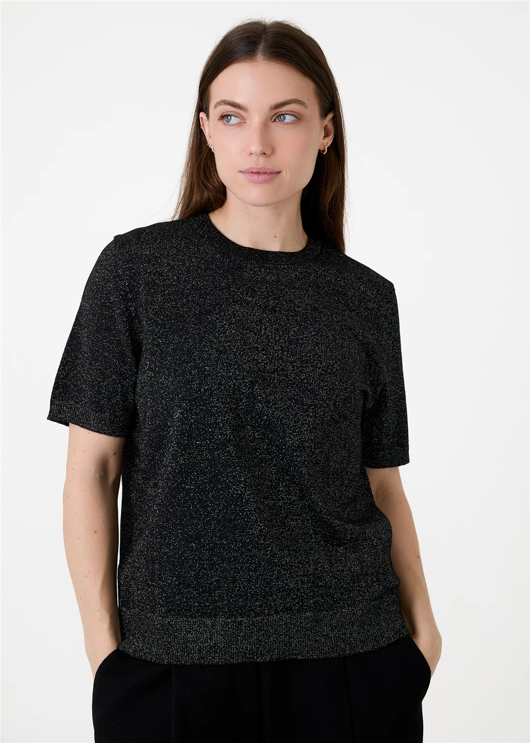 Cashmere Like Lurex Short Sleeve Crew Neck Jumper