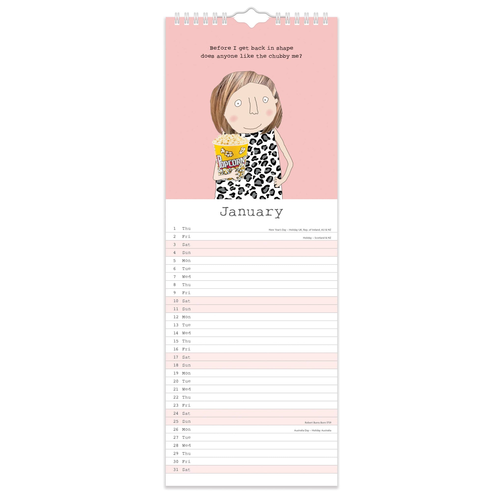 2026 Rosie Made a Thing Slim Calendar from Portico Designs Ltd. Hilarious and quirky illustrations to keep you looking at the brighter side of life throughout the year! Month to View Layout. Each month includes notes section and next month planner. Includes 2026 and 2027 planners plus list of holidays and important dates.