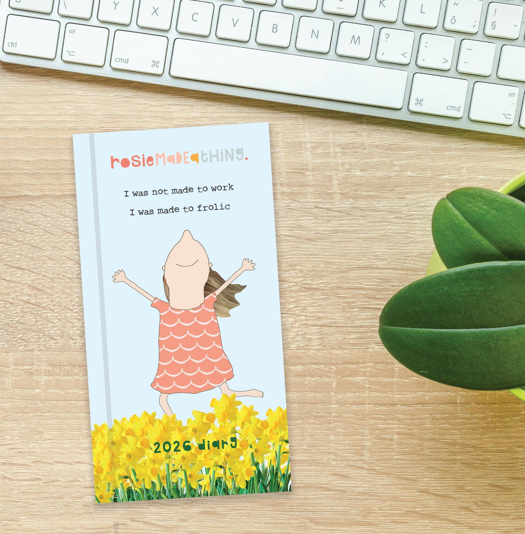 2026 Rosie Made a Thing Slim Diary from Portico Designs Ltd. Hilarious and quirky illustrations to keep you looking at the brighter side of life throughout the year! Slim format diary with handy marker ribbon to help you organise a busy life on the go. Week to View Layout. With To Do and Notes sections for each week to keep you organised. Includes 2026 and 2027 planners plus list of holidays and important dates.